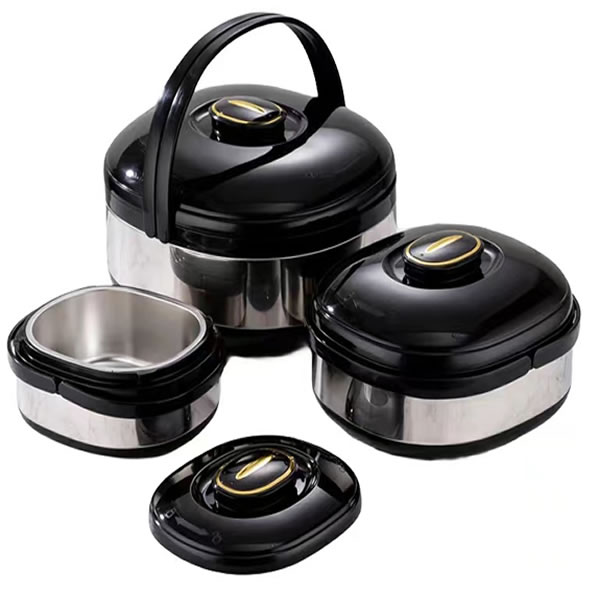 Features a 3-piece Insulated Casserole Food Warmer Set, designed with a modern, sophisticated aesthetic. These containers are ideal for maintaining food temperature for hours, making them perfect for potlucks, family dinners, or outdoor gatherings.